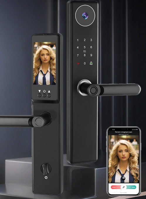 猫眼可视指纹锁带摄像头远程家用防盗入户门木门涂鸦智能门锁
